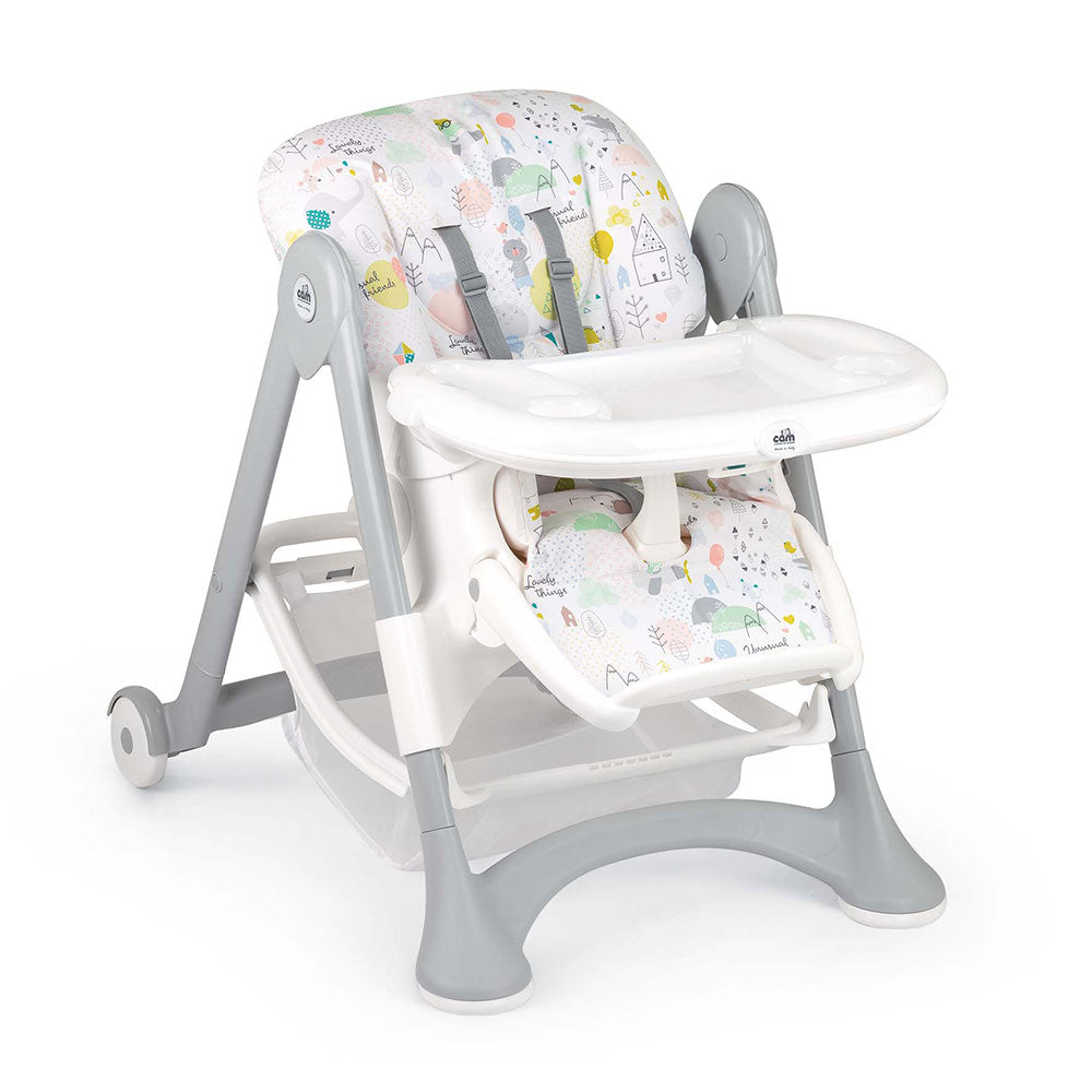 Podešavanje visine u 6 položaja, 3 pozicije nagiba naslona za leđa, sinhronizovano pomeranje naslona za leđa i oslonca za noge, 3 poslužavnika, pregrade za odlaganje, mekano punjenje, sigurnosni pojas sa 5 tačaka za vezivanje, zadnji točkovi sa kočnicom, prostrana korpa.