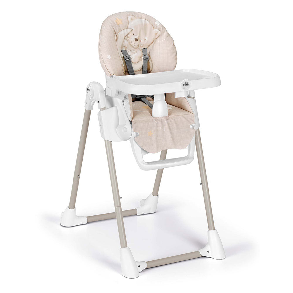 8 visina, podesivi naslon za ledja sa 4 položaja od rodjenja, podesivi naslon za noge sa 3 visine, veliki, podesivi i skidajući poslužavnik, meko punjenje, sigurnosni kaiševi sa 5 kopči, zadnji točkovi.