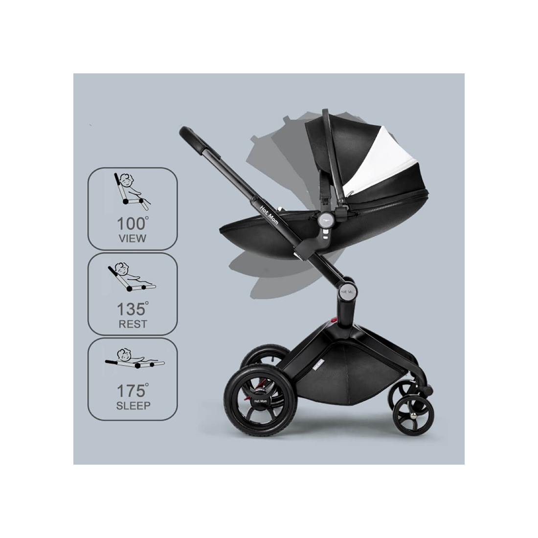- Napomena: kolica su kompatibilna sa auto sedištem Hot Mom 0-13kg (kupuje se odvojeno).