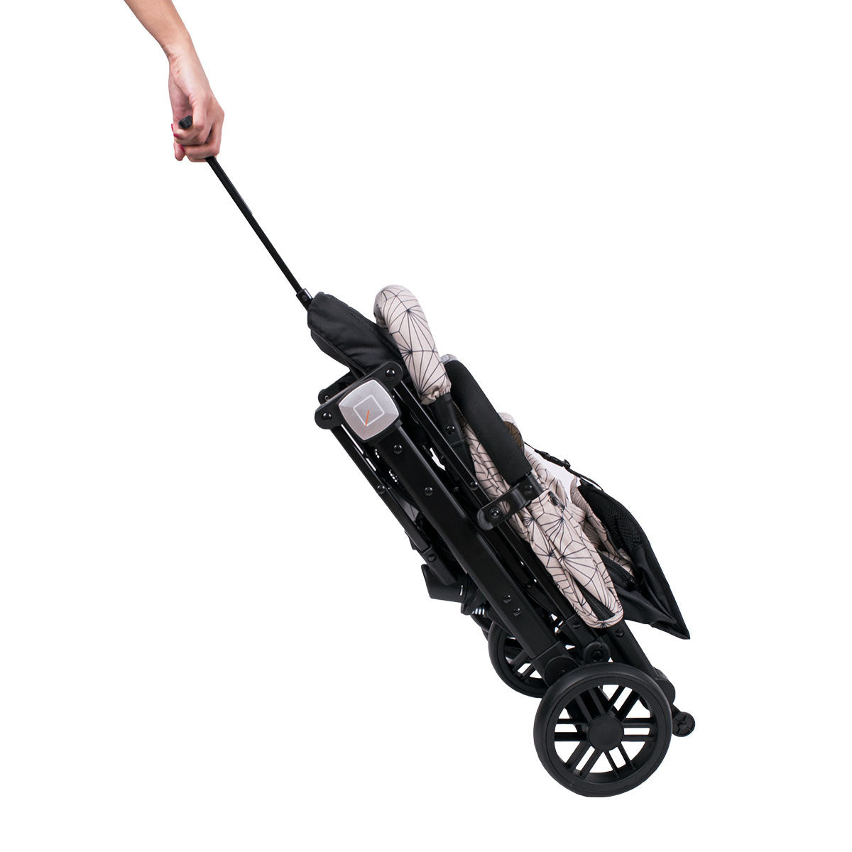 - Kolica se sklapaju u dimenzije avionskog prtljaga sa teleskopskom ručicom, pomoću koje se kolica mogu vući kao kofer